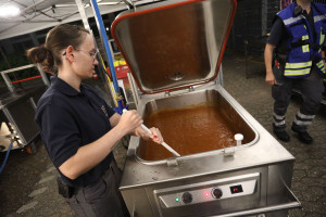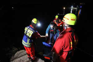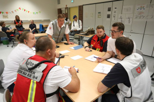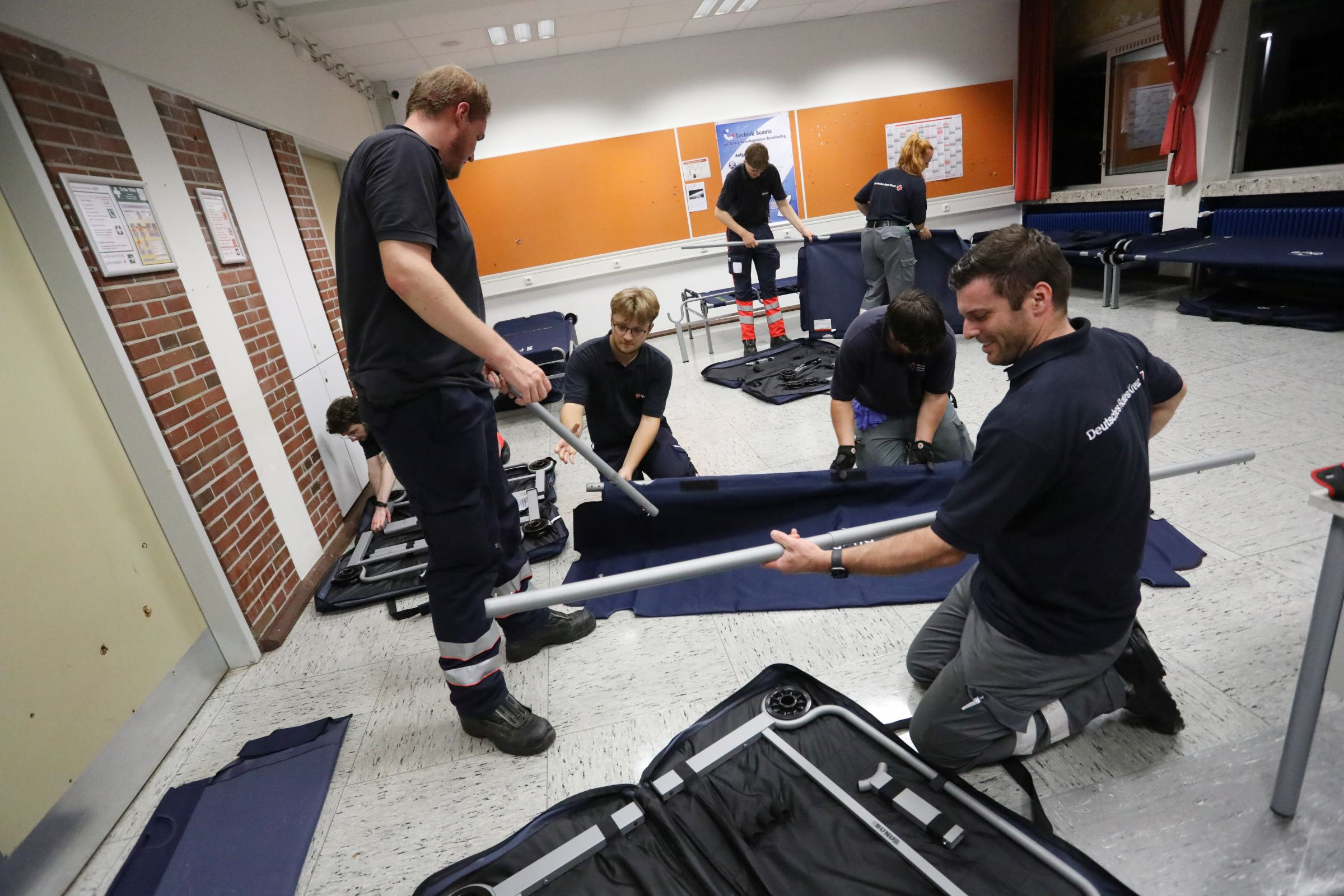 Troisdorf: Eine angenommene Hochwasserlage und eine hohe Anzahl an betroffenen Menschen war das Szenario, dass die DLRG Rhein-Sieg als auch das Deutsche Rote Kreuz (DRK), der Malteser-Hilfsdienst (MHD), das Technische Hilfswerk (THW) sowie die Feuerwehr am Freitagabend zu bewältigten hatten. Eine größere Personengruppe wurde vom "steigenden Hochwasser" eingeschlossen und mussten aus der sehr kritischen Situation gerettet werden. Es war jetzt die Aufgabe der Rettungskräfte, die über 100 Personen aus dieser "gefährlichen Lage" in Sicherheit zu bringen. Hierfür wurden die örtlichen Gegebenheiten am Rotter See in Troisdorf genutzt. Die besondere Aufgabe der DLRG war hierbei, die Personen mit Booten sicher an Land zu transportieren, wo sie zur weiteren Betreuung an das DRK übergeben wurden. Da die Menschen nicht in ihre Häuser und Wohnungen zurückkehren konnten, musste ein geeigneter Betreuungsplatz für eine so hohe Anzahl an Personen eingerichtet werden, an denen die Personen verpflegt werden konnten und auch die Möglichkeit zur Übernachtung hatten. Hierfür richtete das THW einen Betreuungsplatz in einem nahegelegenen Berufskolleg ein. Durch das DRK und den MHD wurde dort die weitere Betreuung für die Personen übernommen.